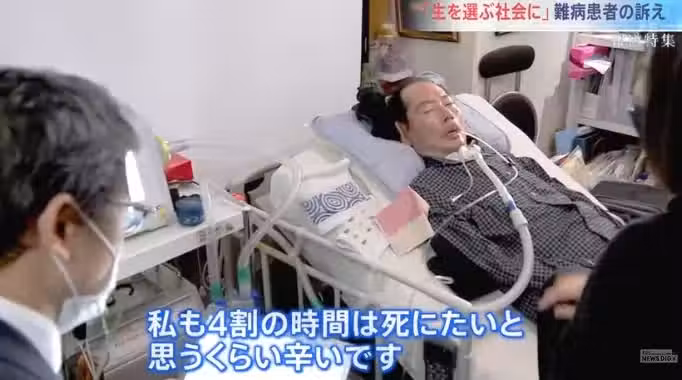 岡部宏生24小時需要人護理,妻子也因為照顧他得了抑鬱症。他曾無數次自責,也很理解那些安樂死的人的心理,但依然認為推崇安樂死的社會,是沒有希望的。