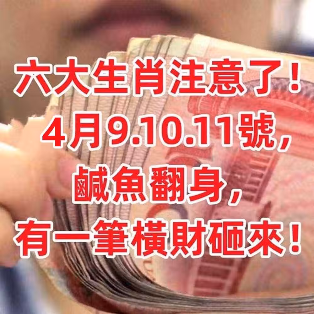 4月9.10.11號鹹魚翻身,有一筆橫財砸來的生肖!