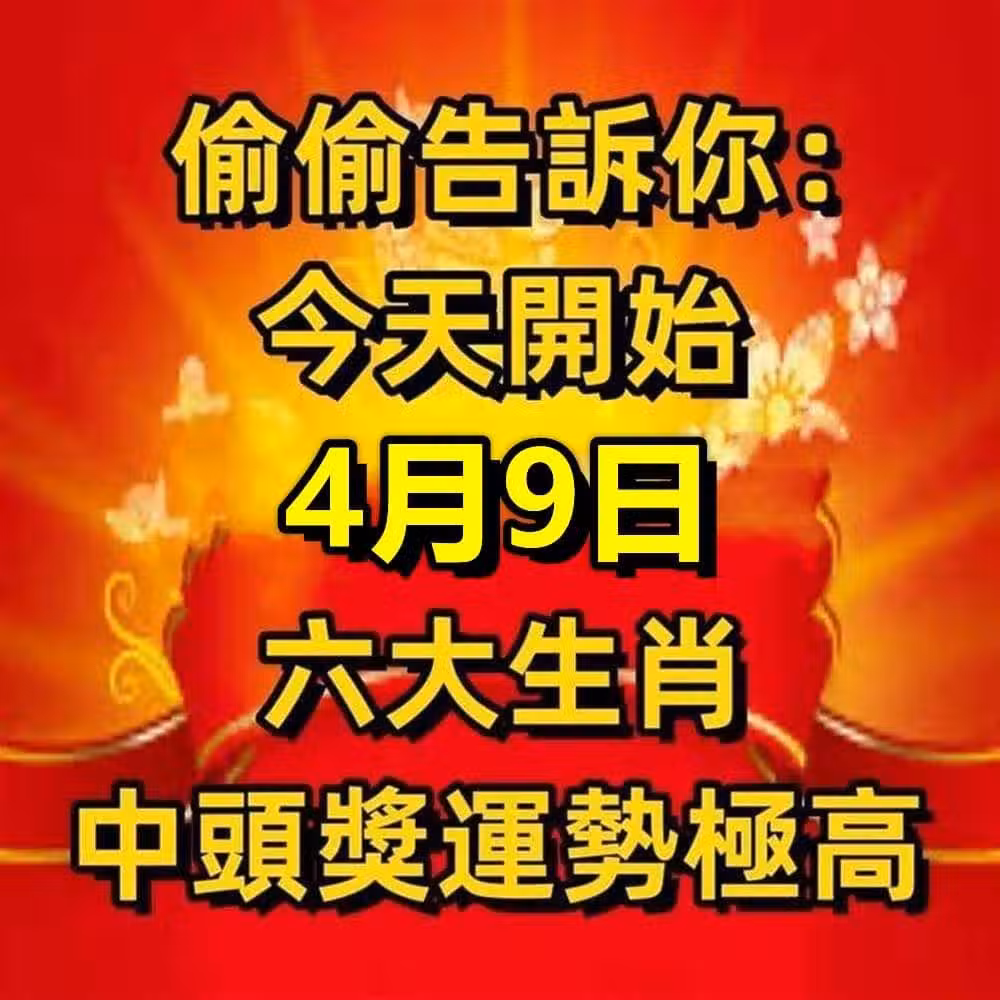 偷偷告訴你:今天開始(4月9號)中頭獎運勢極高的生肖!