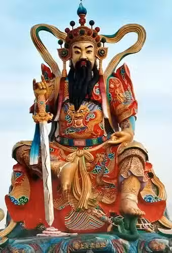 玄天上帝,即真武大帝,或真武、北極真君、元天上帝。真武是古代漢族神話傳說中的北方之神玄武,宋時避諱改玄為真,稱真武帝,宋朝道教的北方上帝,明朝天子的保護神。據傳,他是盤古之子,於玉帝退位後任第三任天帝,生有炎黃二帝。曾降世為伏羲,為龍身,中華之祖龍。