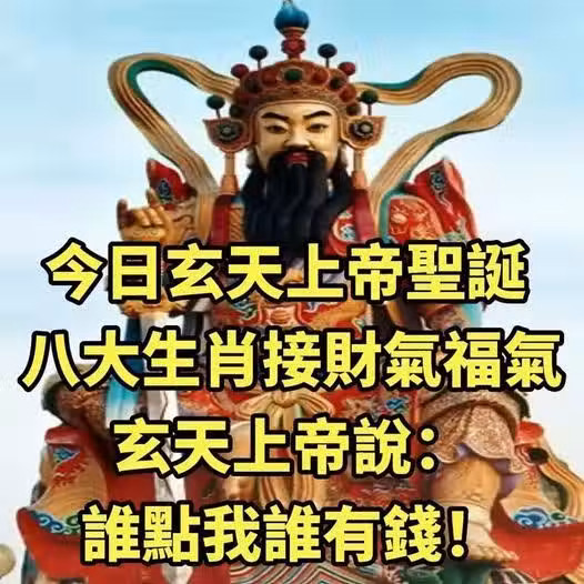 今日玄天上帝聖誕 !八大生肖快來接財氣福氣,玄天上帝說:誰點我誰有錢!