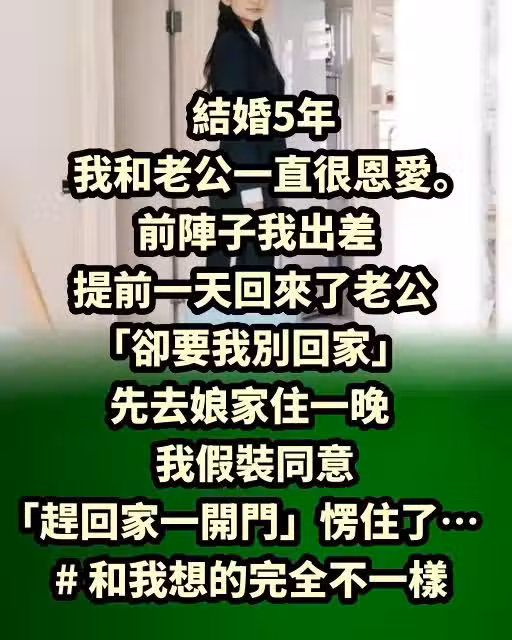 前陣子我出差提前一天回來了,老公「卻要我別回家」先去娘家住一晚,我假裝同意「趕回家一開門」愣住了… # 和我想的完全不一樣