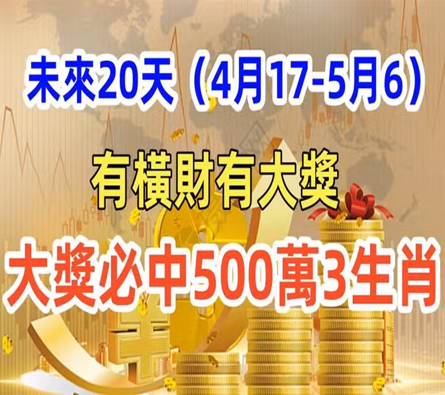 未來20天(4月17到5月6)有橫財有大獎,大發特發,大獎必中500萬3生肖