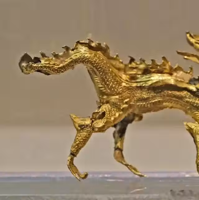 經過精細鑑定,這條金龍長11厘米,採用捶揲工藝精心製作,栩栩如生,精美絕倫。它究竟屬於哪個朝代,為何沉睡在西湖湖底?專家們深入研究後證實,這條金龍是帝王進行投龍儀式時所用的信物。投龍是道教中的一種祈福消災儀式,帝王將寫有祈福願望的玉簡與金龍一同投放到道教的洞天福地或名山大川中,期望金龍能承載玉簡抵達神靈之處。