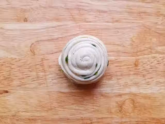 10、取一個面卷,用手按扁後,再用擀麵杖擀成薄一點的片狀,擀好的餅胚可以直接下鍋油煎