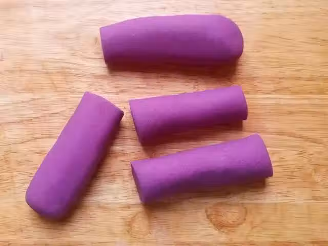 15、接著我們再挨個把每一段麵糰,都搓成細細的長條,然後再切成小顆粒狀