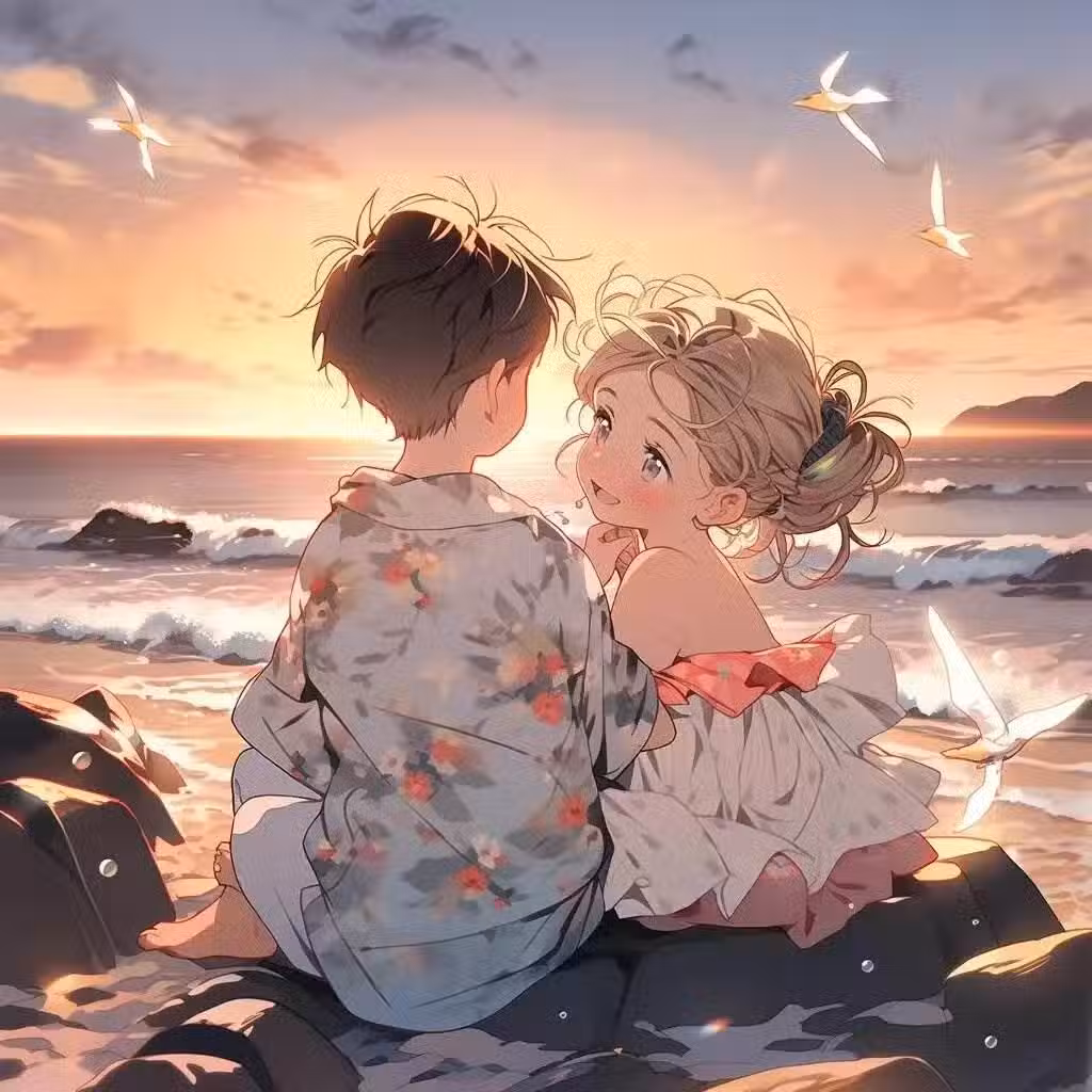 電影快開始,入場時,他跑去前台,買了一桶爆米花遞給你,你順手接過去,拿起一顆,塞到他嘴裡,你們相視一笑。