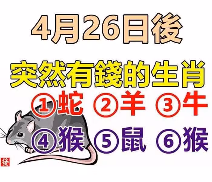屬蛇的人天性單純、天真,有一顆善良的心,不過在這個世道也是比較容易受到一些心懷不軌的人加害,不過在生活上他們還是人緣不錯的,與人和善,不會去輕易得罪他人,並且喜歡去結交新的朋友,朋友比較多,在工作上也是特別努力,能力非常好,是企業需要的人才,4月26號以後生肖蛇的人運勢得到很大的改變,生活上好運氣是常常會伴隨左右的,事業會有比較大的突破,財運會開始旺起來,並且經常會有橫財,必會中大獎。