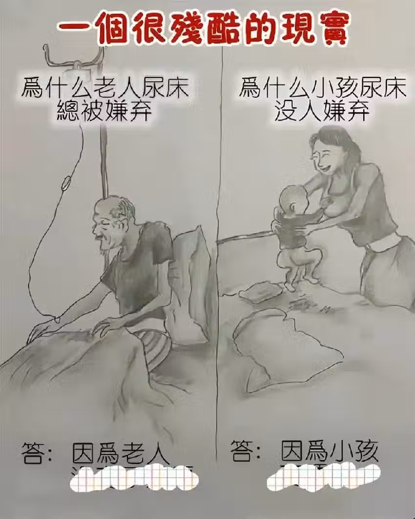 孫子問阿嬤:為什麼「小孩子尿床」不被嫌臟,「老人尿床」卻被嫌棄?阿嬤一句話完美解釋