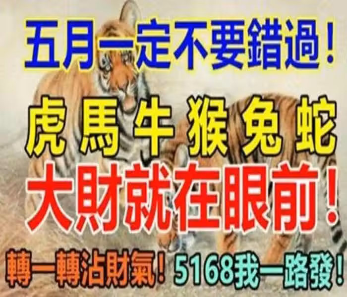 五月不要錯過(虎馬牛猴兔蛇)大財就在眼前,轉一轉沾財氣