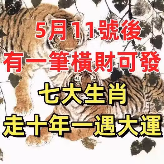 5月11號後有一筆橫財可發,走十年一遇大運的七大生肖