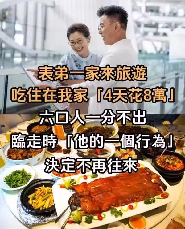 表弟一家來旅遊!吃住在我家「4天花8萬」六口人一分不出 臨走時「他的一個行為」決定不再往來