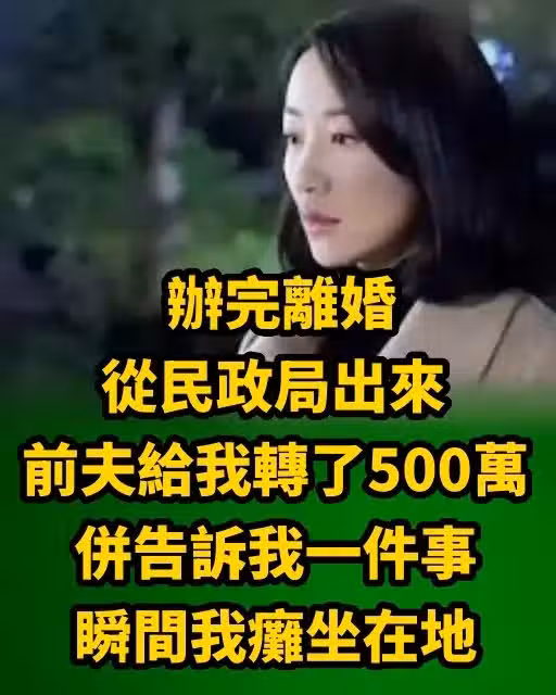 辦完離婚從民政局出來,前夫給我轉了500萬,並告訴我一件事,瞬間我癱坐在地
