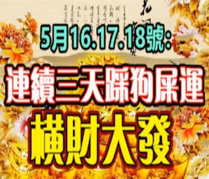 5月16.17.18號連續三天踩狗屎運,橫財大發的生肖