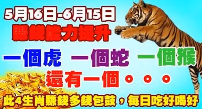 5月16日-6月15日賺錢能力提升,此四生肖賺錢多錢包鼓,每日吃好喝好