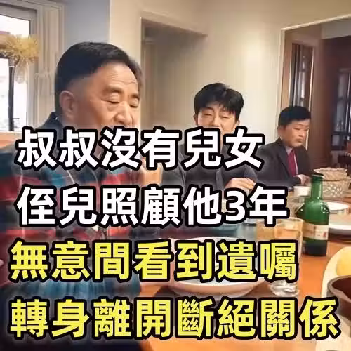叔叔沒有兒女,侄兒照顧他3年,無意間看到遺囑,轉身離開斷絕關係