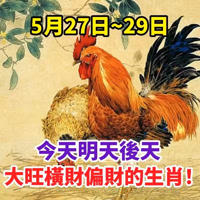5月27日~29日(今天明天後天)大旺橫財偏財的生肖!