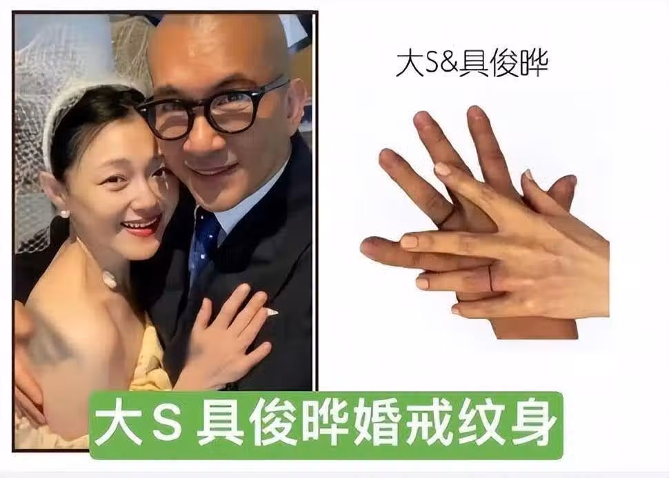 大S和具俊曄結婚的時候,說大S喜歡手工,紋的戒指,具俊曄還給大S畫了鉆戒。