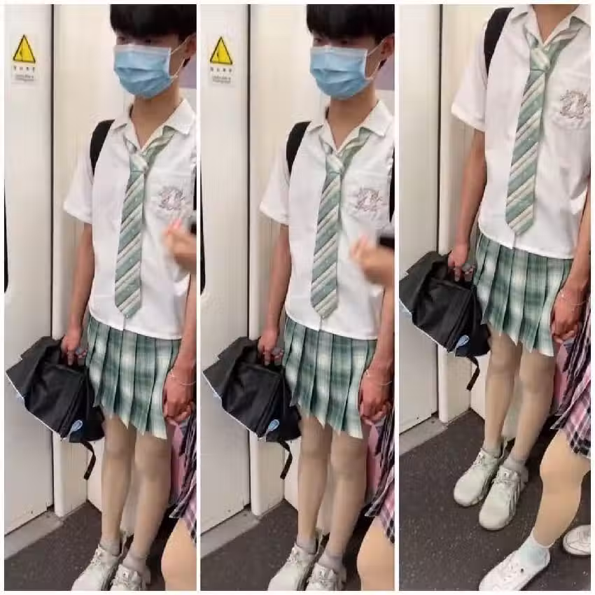 在武漢的捷運里,一個清瘦高個子男生身穿著女生的JK制服短裙,腿上還穿著一雙肉色的絲襪,整個模樣感覺比身旁的女生還顯 「少女感」!咋一看,還是覺得心頭一顫,現在的青少年都玩得這麼大膽出位又這麼 「清新脫俗」了嗎?