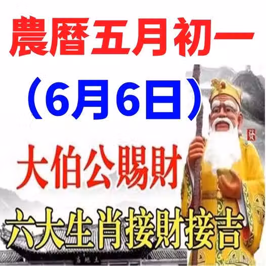 農暦五月初一(6月6日)大伯公賜財,六大生肖接財接吉