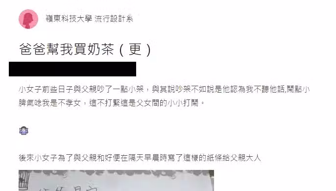 跟爸爸起口角!她隔天撒嬌留字條「請幫不孝女買早餐」 爸爸呆萌買完「發現誤會大了」父女倆笑翻和好!