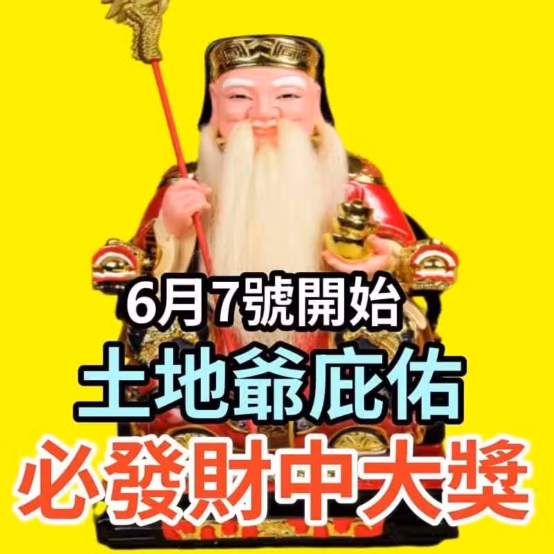6月7號開始運勢上上籤,土地爺庇佑,3生肖必發財中大獎