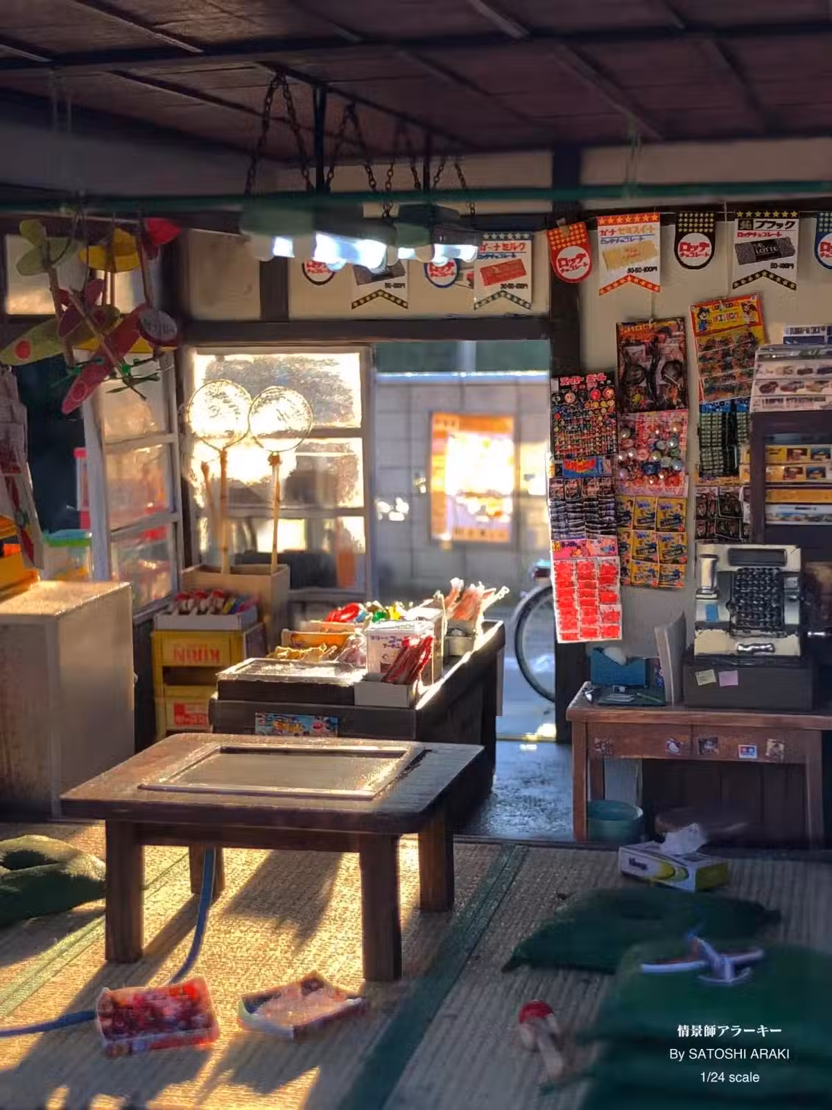 荒木智表示表示,光是考察許多傳統柑仔店的建築就花了很多時間,為了可以完整重現記憶中的柑仔店樣貌,從周遭街道的配置、店內的零食商品、遊戲機台、家具擺設都非常講究,整個模型的完成約莫用了整整一年!
