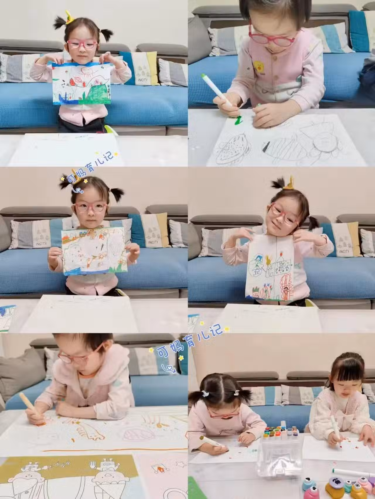所以在孩子3-4歲這個階段,他們看似在畫畫,其實是在畫故事,這是他們語言表達不足時的一種補充,是表達一個動態的過程,不是畫出一個好看的形象或畫面,而是表達出自己的所思所想。