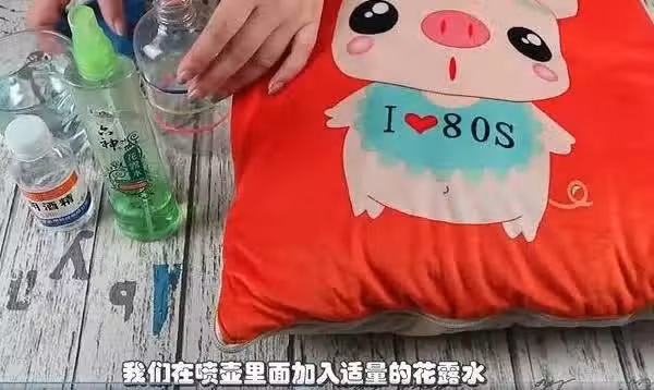 加完水之後,我們把它搖晃均勻,然後噴在枕頭上面,枕頭上就不會再滋生蟎蟲了。