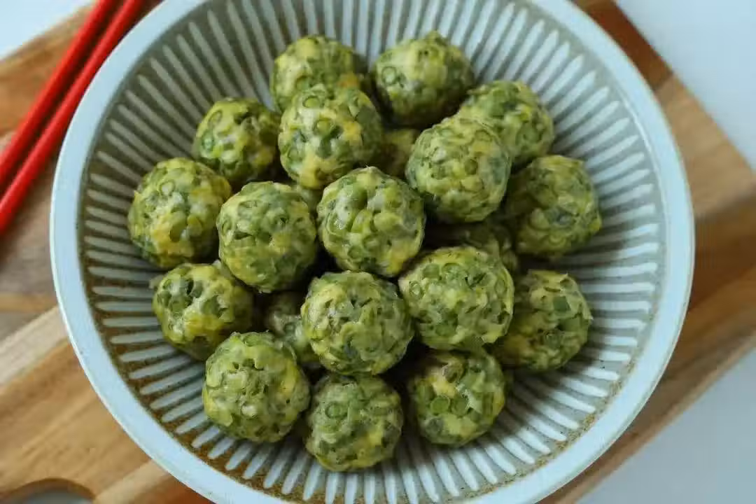 6、這些丸子口感鬆軟有嚼勁,豇豆脆嫩爽口,搭配秘制醬汁更是美味無比。即使不加油、不炒也不燉,直接吃也超級好吃!如果你喜歡的話,還可以嘗試搭配其他醬料或配菜一起享用哦!