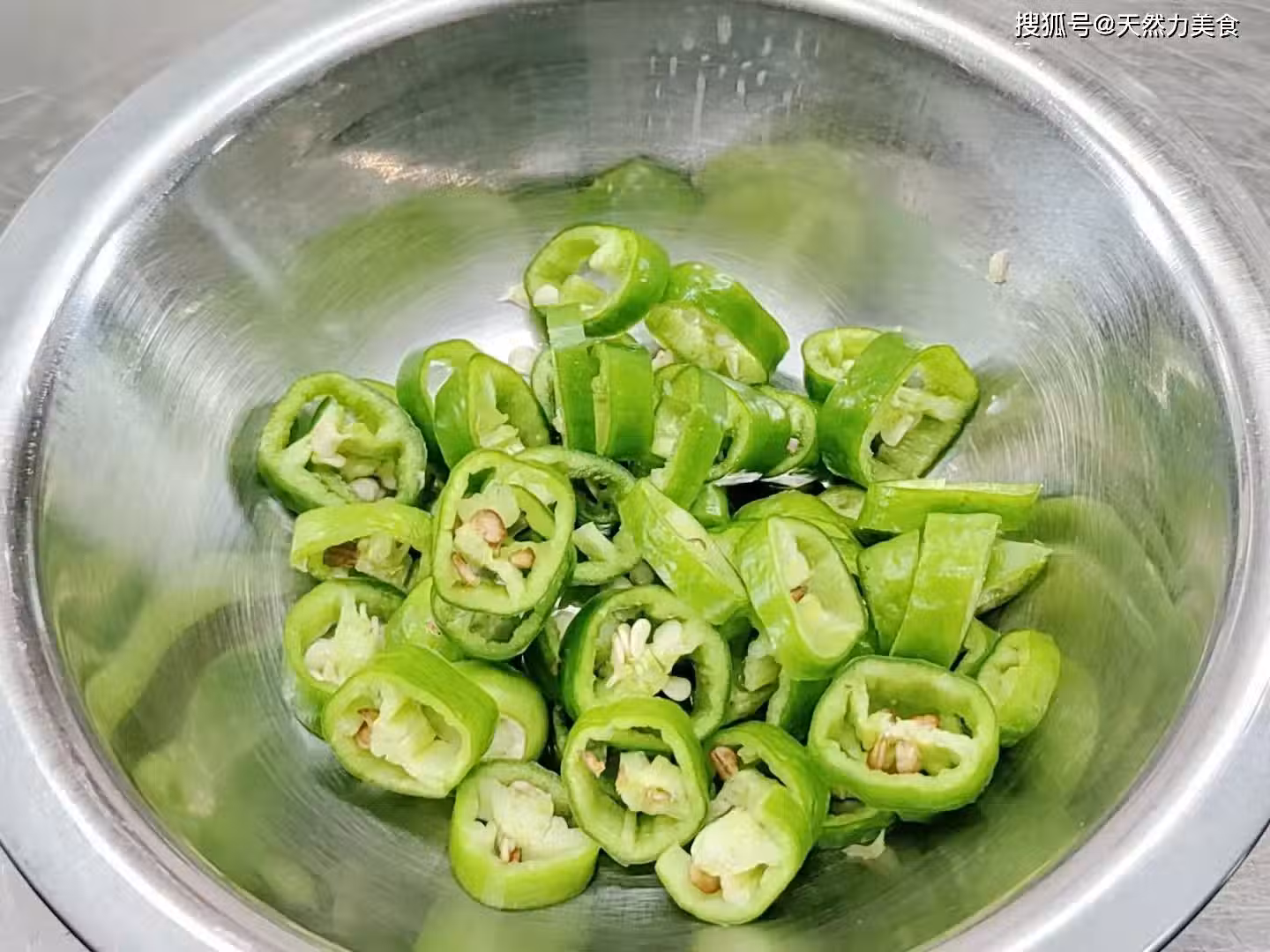 4、青辣椒的辣度差,但是辣香味好,而小米椒辣度好,但香味稍差。小米椒也是切成小圈備用。青辣椒和紅辣椒的下鍋時間不同,所以要分開放。
