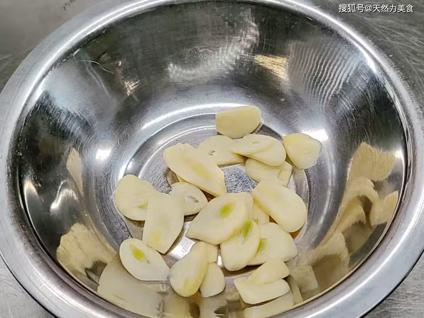 6、青蒜苗的梗比較粗,而且煸炒的時間比較短,所以要先在青蒜苗的梗上多拍上幾刀,這樣更好入味,然後再切成1厘米左右的小段備用。