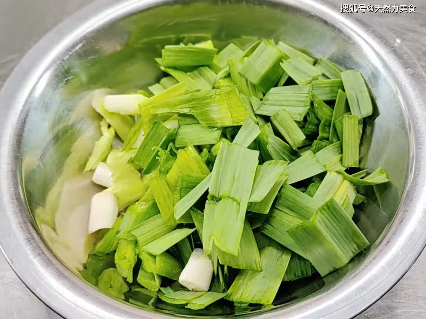 7、做回鍋肉的的時候我們要用到生薑和小蔥來去腥增香,把10克生薑切成大片,4根小蔥打成蔥結備用。
