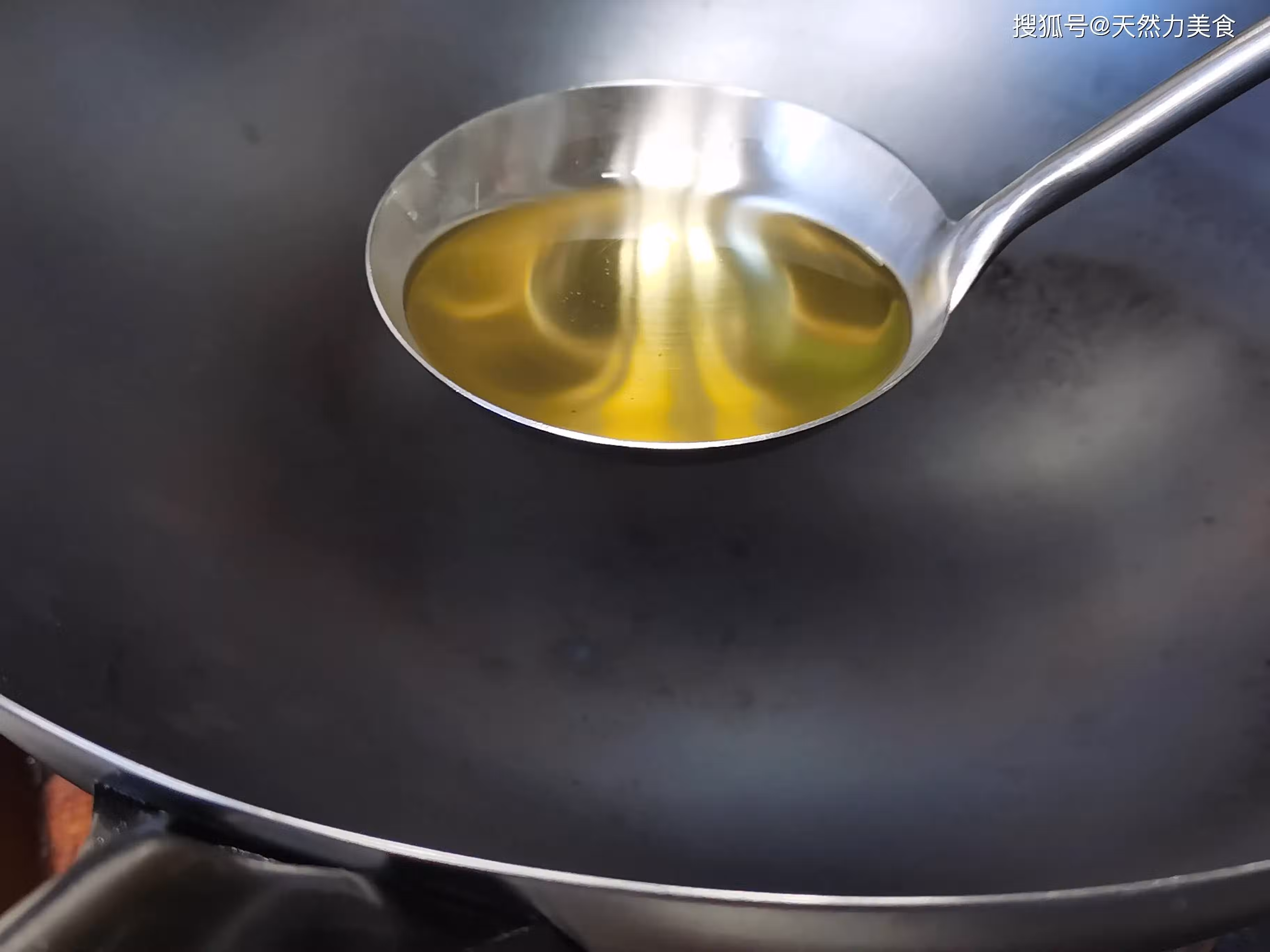 2、在把食材倒進鍋內的時候有一點要注意,那就是我們在把豬肝和配料倒進鍋內的時候,油的溫度已經很高,高到有一點火星就會著火,所以出現這種情況千萬不要發慌,這種現象很正常,你要做的就是用手勺或者鏟子去翻炒鍋中的食材,鍋中的會很快就會滅。