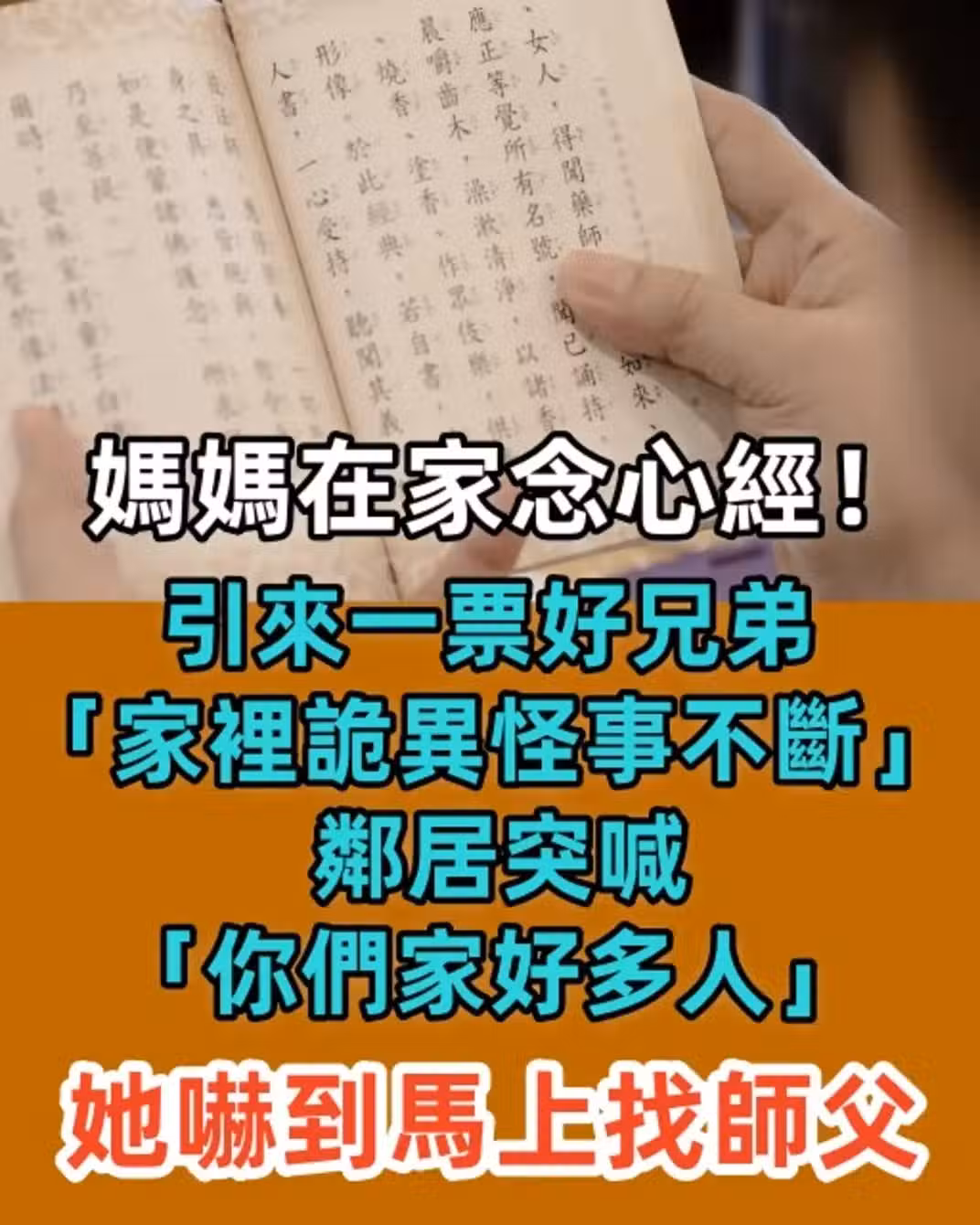 媽媽在家念心經!引來一票好兄弟「家裡詭異怪事不斷」 鄰居突喊「你們家好多人」她嚇到馬上找師父…