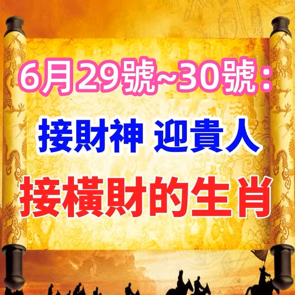 6月29號~30號:接財神,迎貴人,接橫財的生肖!