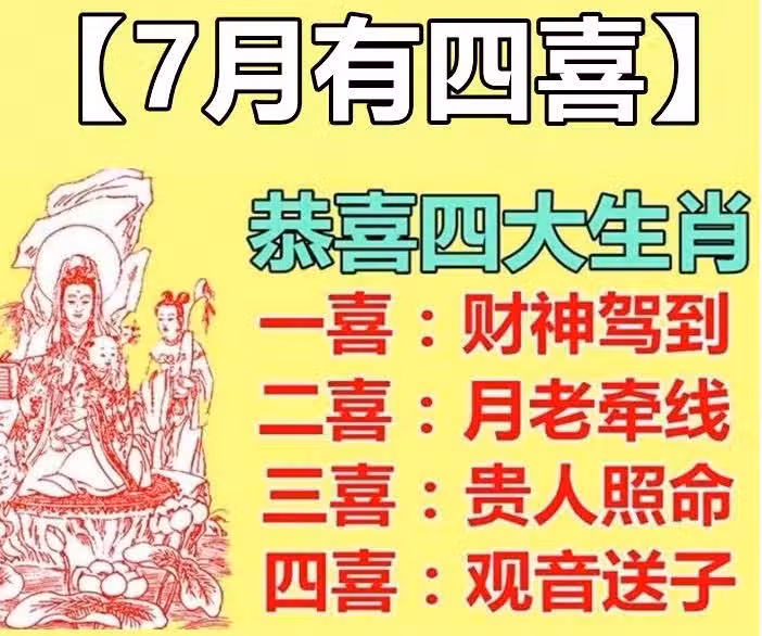 7月有四喜,恭喜四大生肖