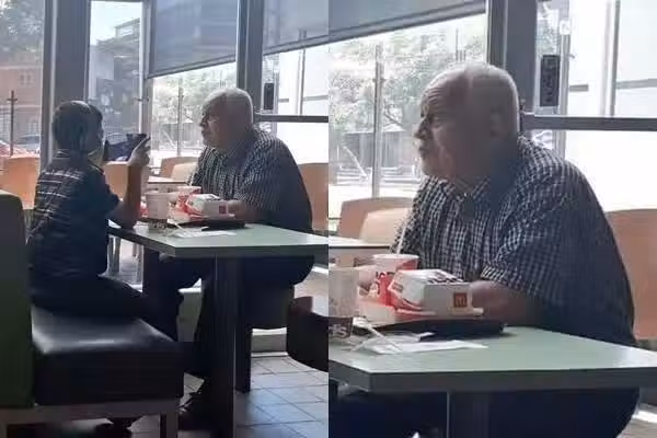 但沒想到孫子對於爺爺的關愛,感到相當不耐煩,不但全程「嗯嗯阿阿」的敷衍應付,吃飽喝足後更是直接戴上耳機打手遊,完全將爺爺晾在一旁。而坐在對面的爺爺,面對孫子無情的對待,也無奈地忍不住紅了眼眶。