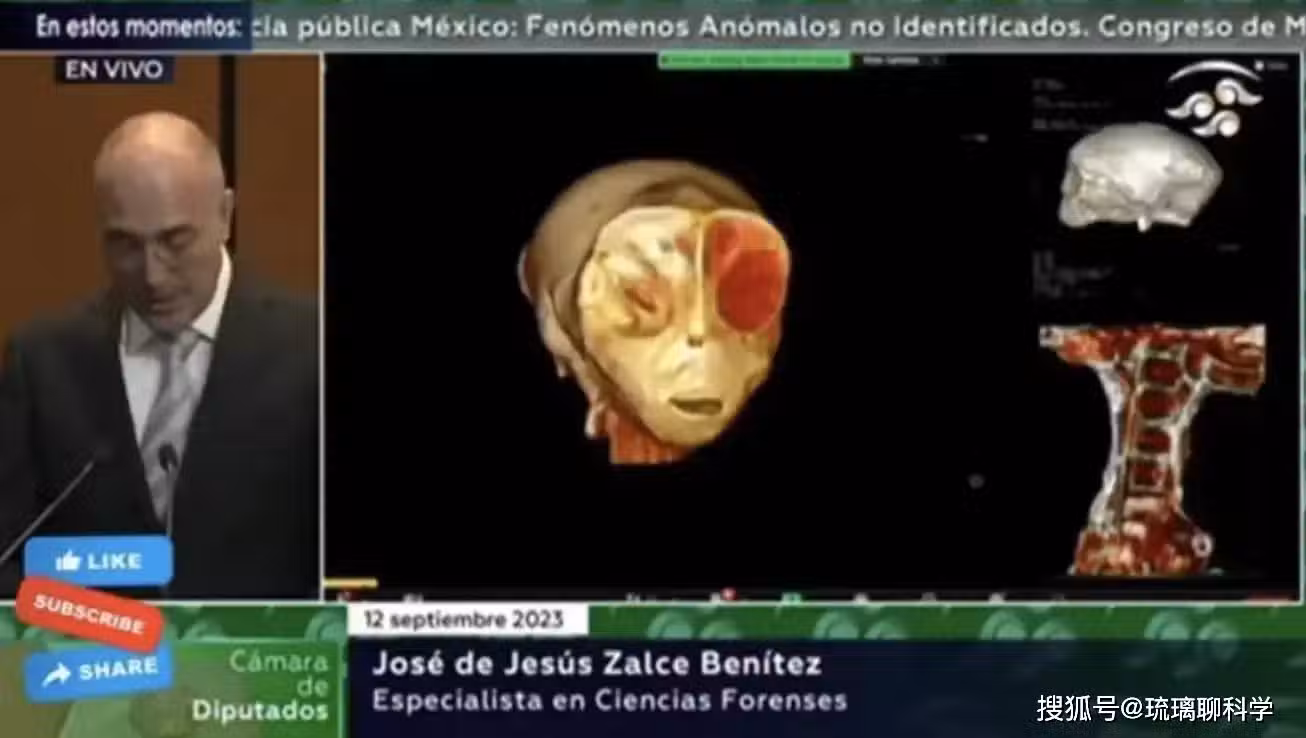 其次,關於化石的形成時間問題也存在疑慮。墨西哥公開的資料顯示,這兩具「外星人屍體化石」的形成時間距今只有800-1500年。然而,我們知道,化石是地殼中包存的屬於古地質年代的動物或植物的遺體、遺物或遺蹟。要想形成化石,至少需要上萬年的時間,有的甚至需要百萬、千萬年。從目前發現的情況來看,還沒有隻有一千年歷史的化石存在。