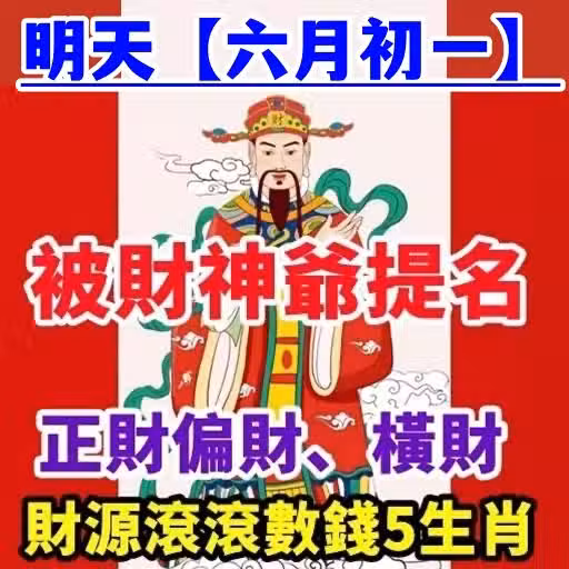 明天【農暦六月初一】被財神爺提名,正財偏財、橫財,財源滾滾數錢
