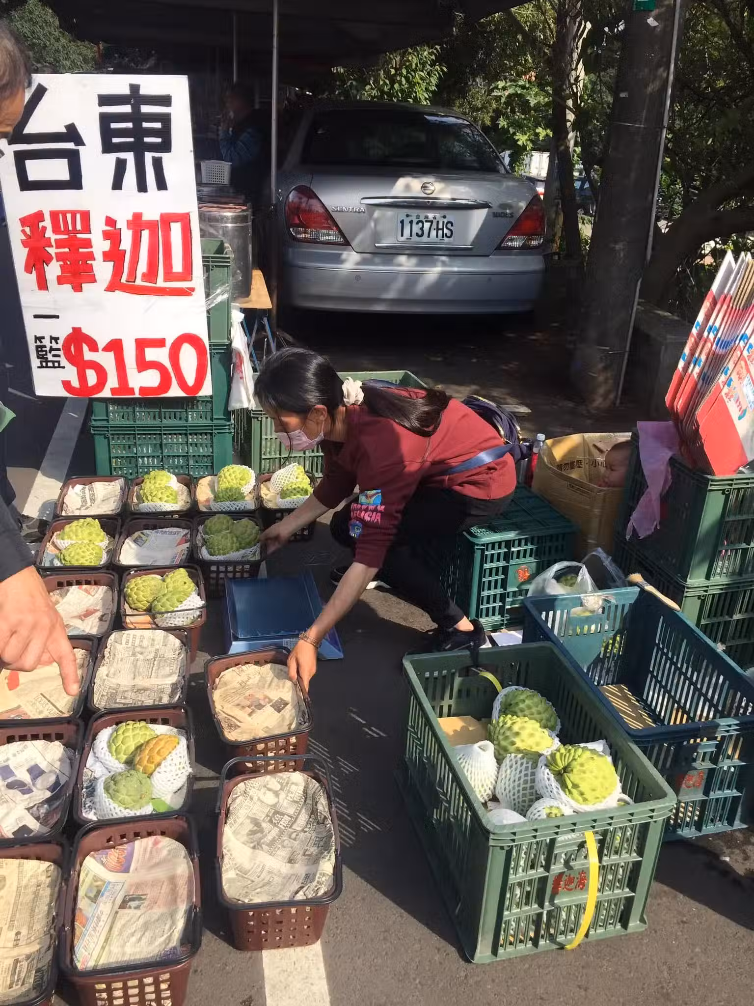 虎頭山擺攤!釋迦媽媽獨自「頂寒風冒雨撐生計」 「往紙箱塞奶瓶」掀開一看:令人鼻酸~