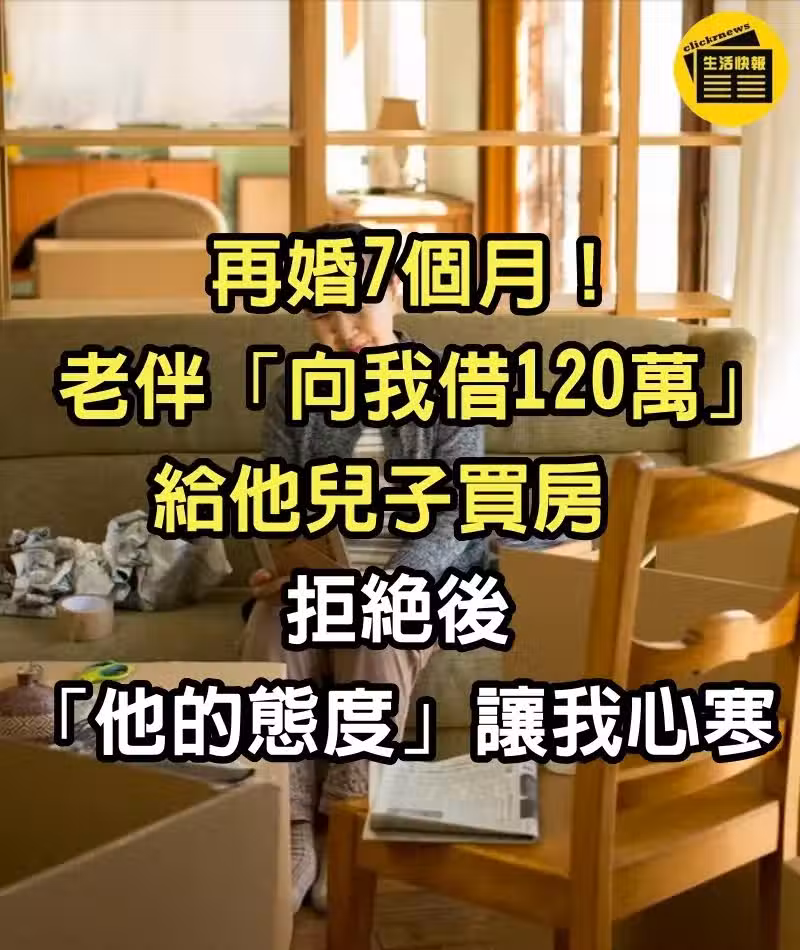 再婚7個月!老伴「向我借120萬」給他兒子買房,我不同意他還打起我房子的主意,再次拒絕後「他開始用行動抗議」我開始後悔了…