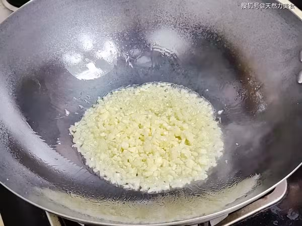 3、接著就把豆豉和蔥白一起倒入鍋內,和姜蒜一起煸炒出香味,這個過程大概有20秒左右香味就能出來。