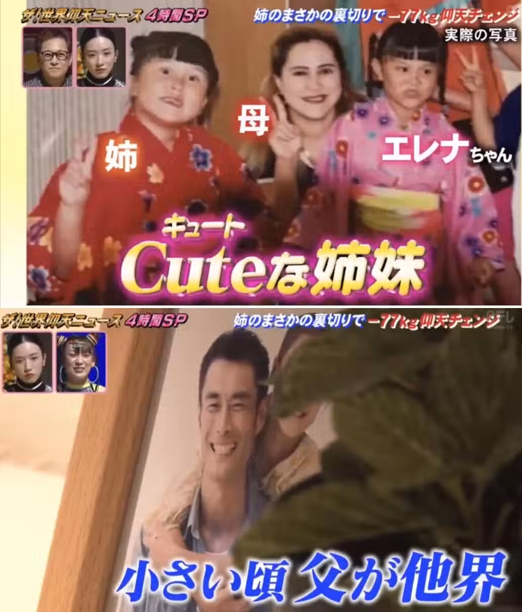 不幸的是,父親在她們懂事之前就離開了人世,為了彌補2名女兒的空虛感,好好補償缺失的那份父愛,母親在這之後的每一天裡都用心給姐妹花準備豐富的食物,甚至為了騙她們多吃點,還說「不能夠瘦下來,太瘦會感冒生病甚至死掉。」