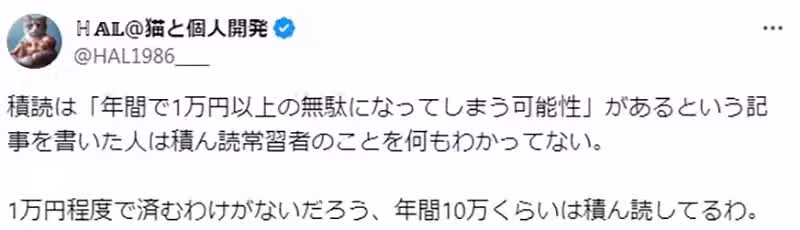 「寫那篇文章的人,不知道怎麼看待購買一本1萬日圓的古書,買來還不看的古書迷。」