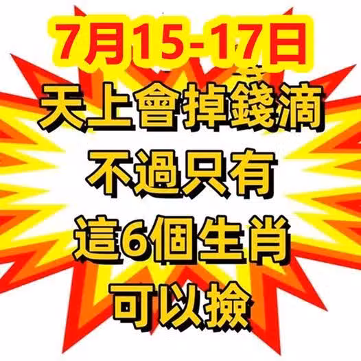 7月15 到 17日天上會掉錢滴,不過只有這6個生肖可以撿!