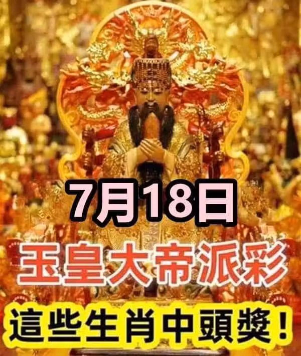 7月18日玉皇大帝派彩 ,這些生肖中頭獎有你嘛!