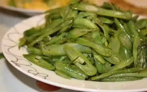 將豆角去筋,清洗乾淨,改刀切成絲,裝入盤中待用。