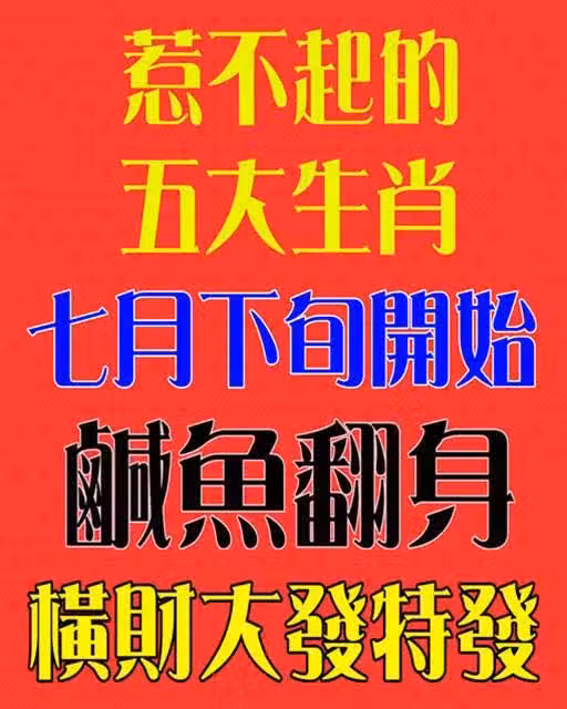 惹不起的五大生肖,七月下旬開始鹹魚翻身,橫財大發特發(有你嘛)