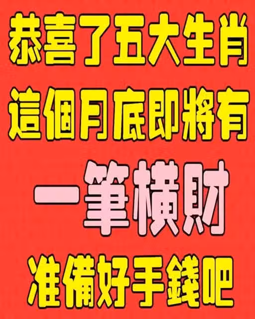 恭喜了五大生肖, 這個月底即將有一筆橫財,準備好收錢吧